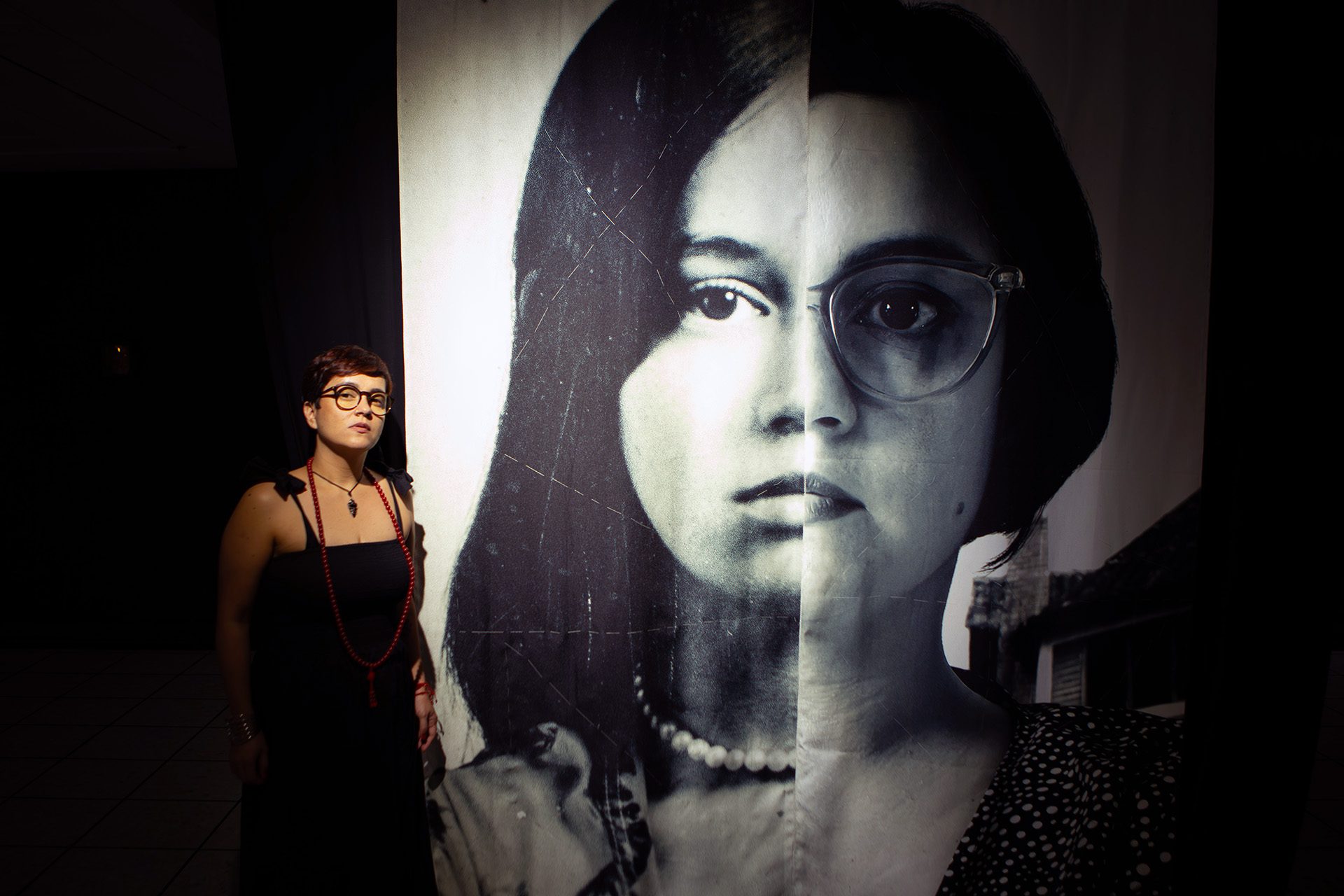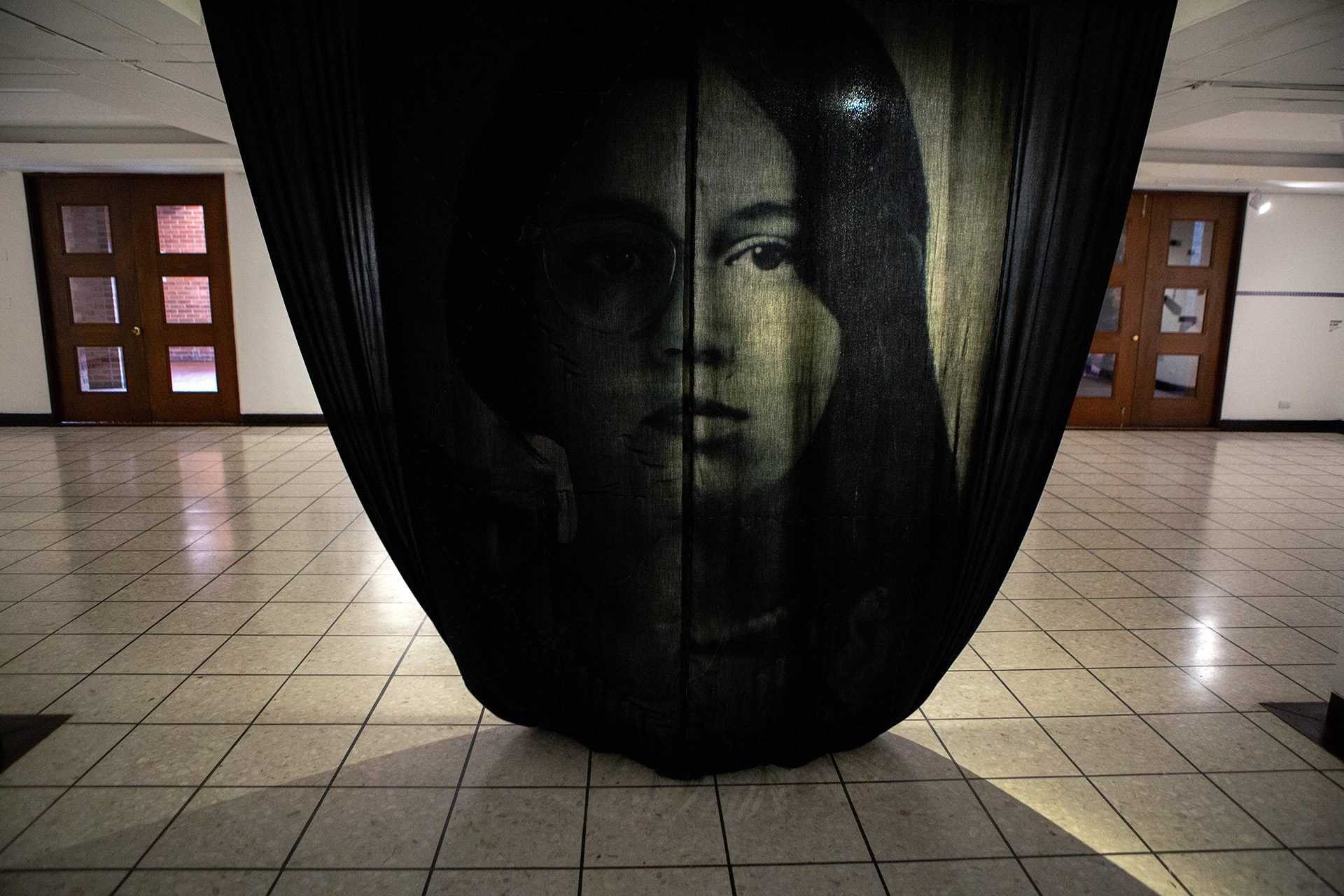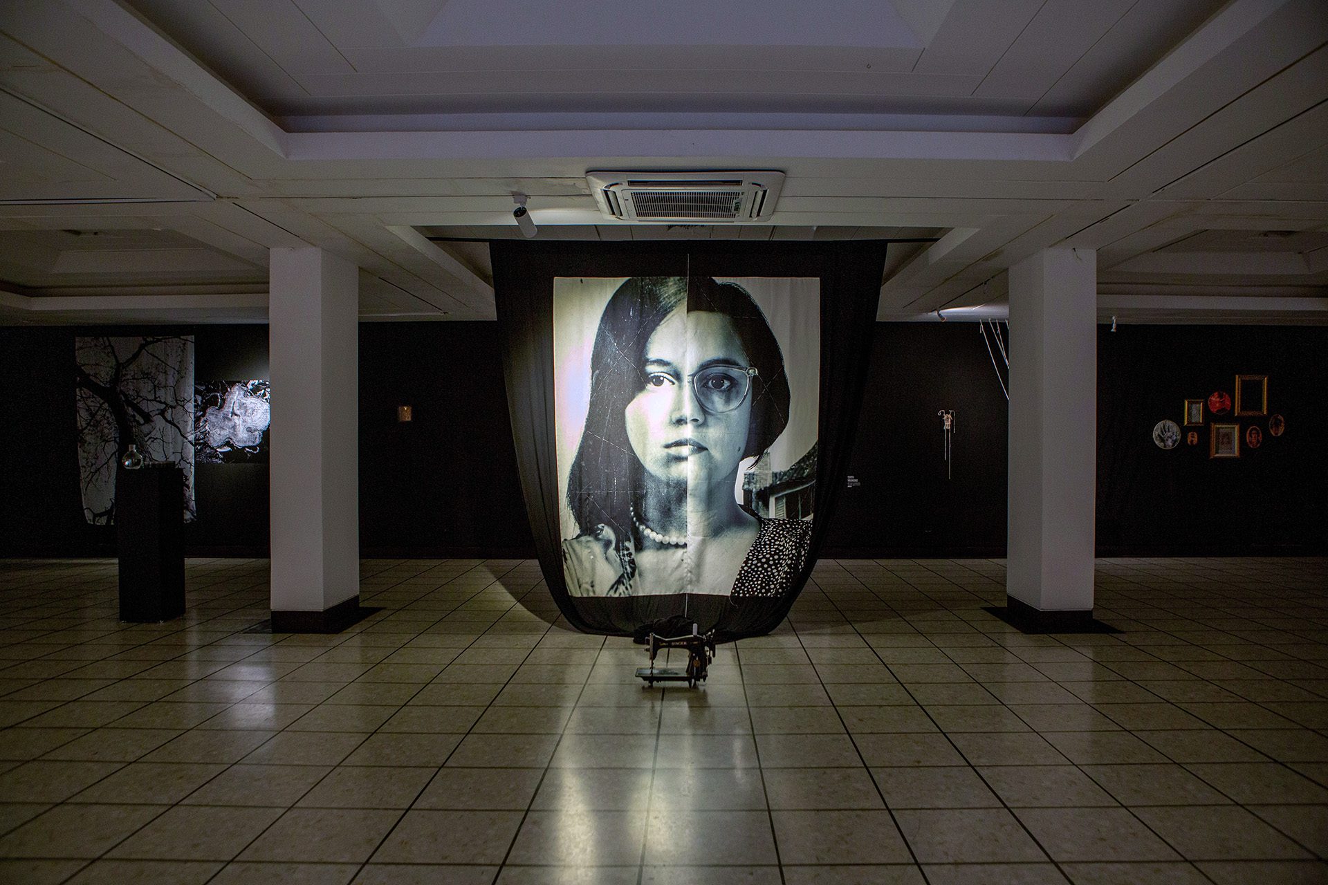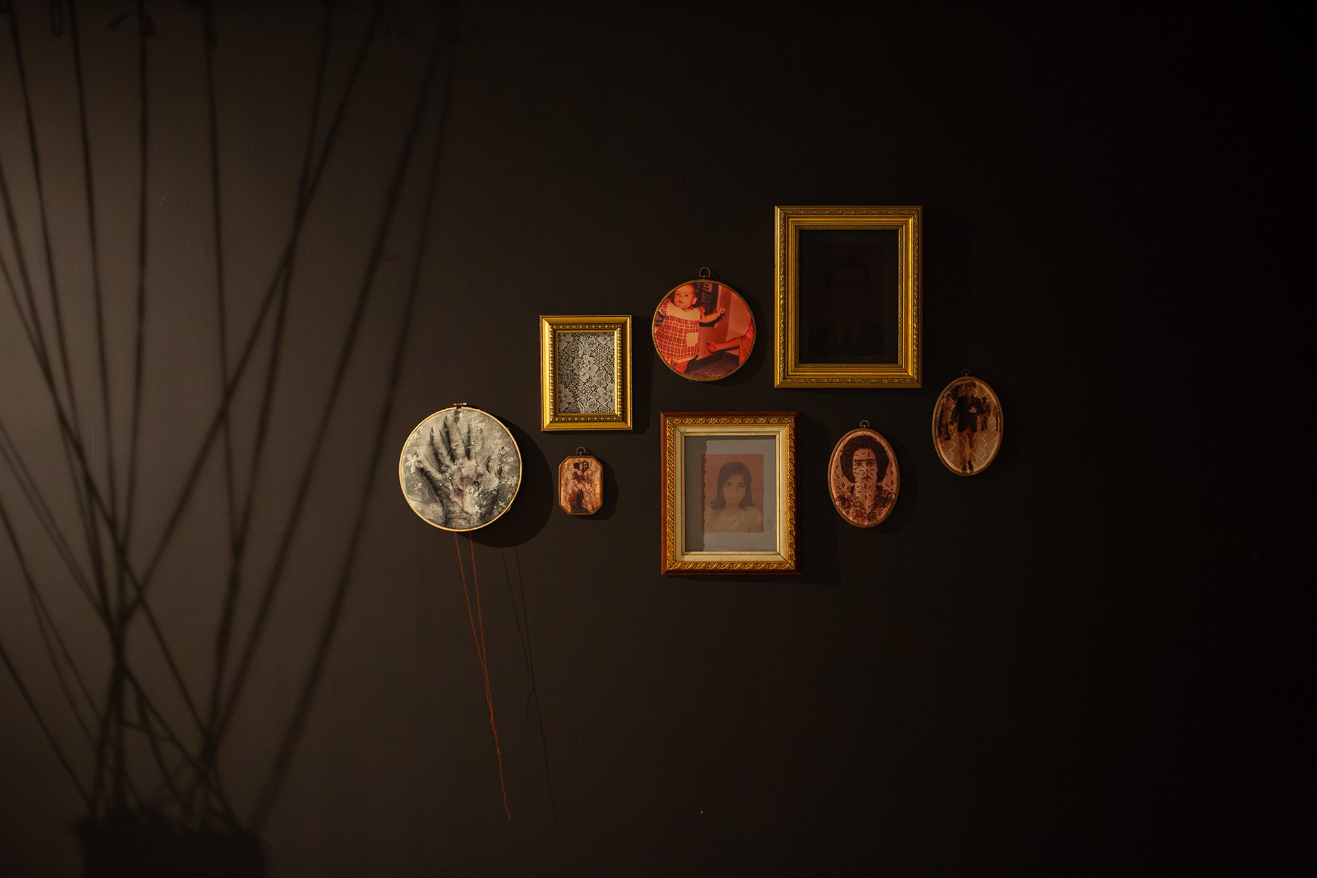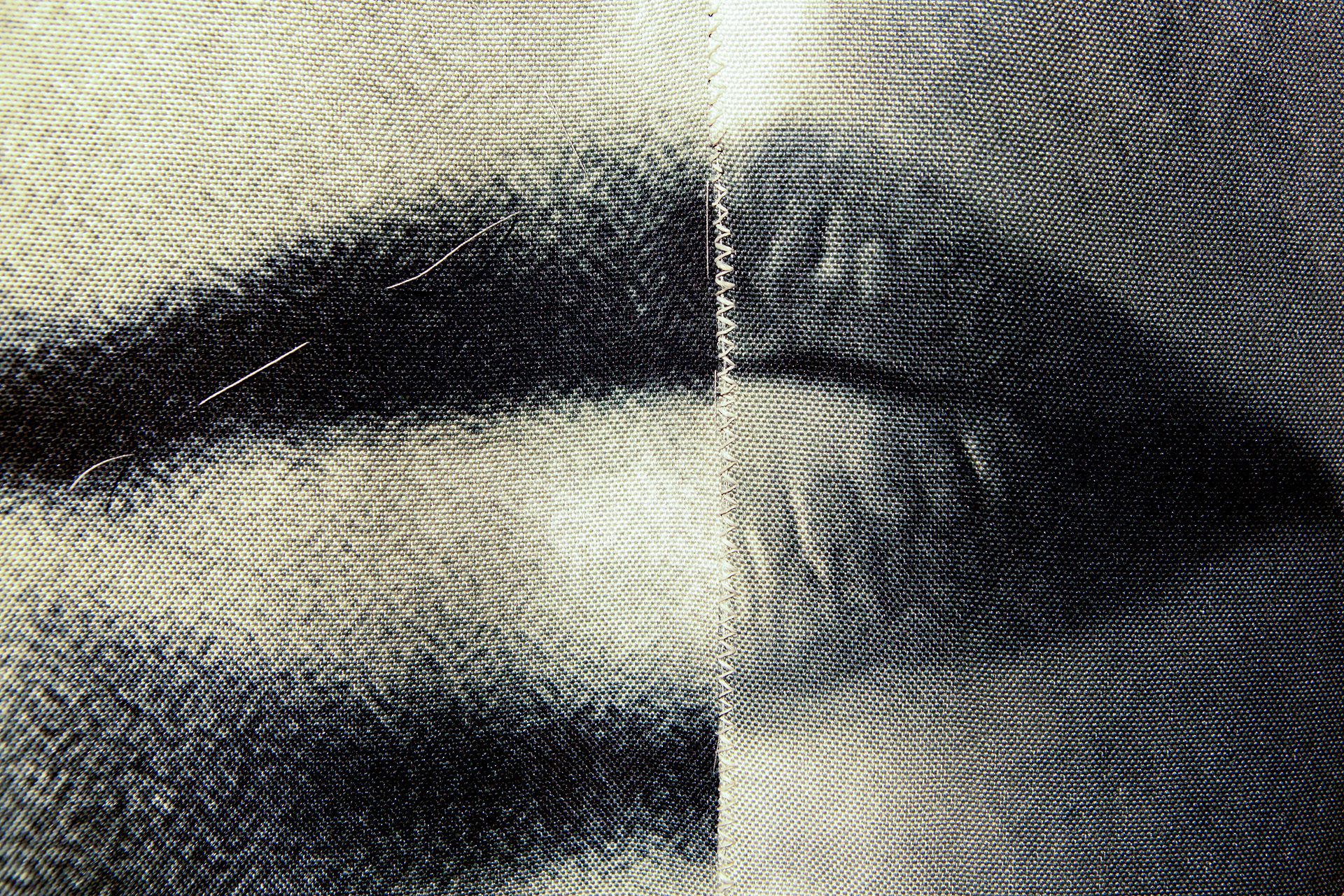 Sentí la ausencia de mi madre a muy temprana edad, aquí me permito explorar esta ausencia materna en mi vida a través de una foto de carné de ella que paso a soportes textiles y la intervengo juntando su rostro con el mío. Aquí, me busco a mi misma a través de su rostro y sus manos de mujer costurera.